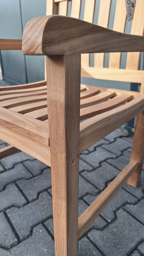 De Beatrix Teak Tuinstoel is niet zomaar een stoel, het is een stijlvolle en duurzame toevoeging aan elke buitenruimte. Deze tuinstoel is vervaardigd uit hoogwaardig gerecycled teakhout, afkomstig van het Indonesische eiland Java. Java-teakhout staat wereldwijd bekend om zijn uitzonderlijke kwaliteit, en dat merk je meteen aan de robuuste afwerking en het karaktervolle hout dat in deze stoel is verwerkt. Elke tuinstoel vertelt zijn eigen verhaal, met unieke houtnerven, natuurlijke kleurnuances en een warme, rustieke uitstraling.
