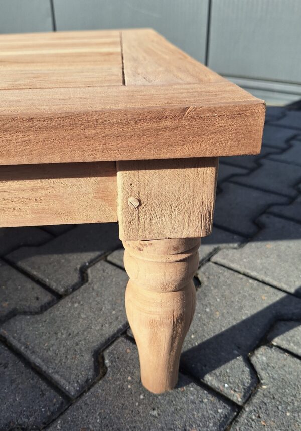 Het teak krijgt in de loop van de tijd een zilvergrijze kleur. Wij adviseren u het hout 1 of 2 keer per jaar schoon te maken. Dit kunt u doen met Teak Cleaner. Daarmee haalt u het vuil van het hout en behoudt het haar mooie zilvergrijze kleur.
