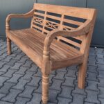 Een bijzonder detail zijn de fraai uitgesneden bloemornamenten in de rugleuning, die zorgen voor een subtiele, romantische uitstraling. Deze decoratieve elementen geven de tuinbank karakter, zonder dat het geheel te druk oogt. Het stevige teakhout is met zorg bewerkt, en zoals je mag verwachten van een kwaliteitsbank, is de constructie solide en duurzaam.