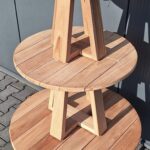 Set van 3 ronde Teak bijzettafels met verschillende afmetingen en hoogtes