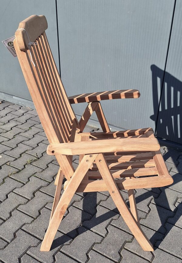 De Teak Ubud standenstoel is een elegante en comfortabele tuinstoel, vervaardigd uit duurzaam teakhout. Dankzij de verstelbare rugleuning met 5 standen kies je altijd de ideale zithouding – of je nu aan tafel zit of juist even lekker wilt ontspannen.