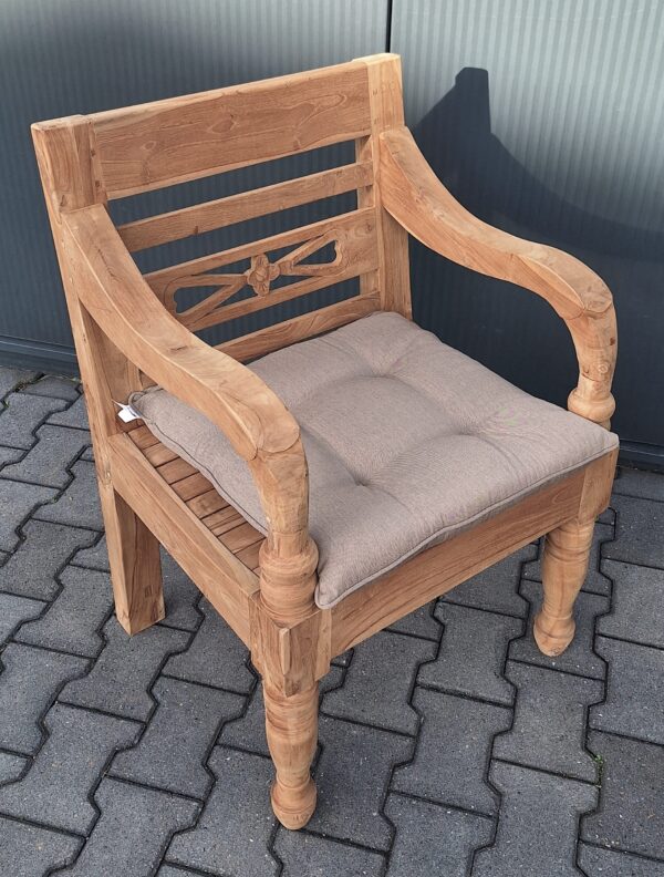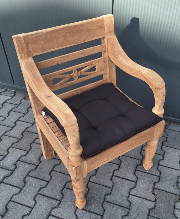 Maar ook zonder tafel komt deze stoel volledig tot zijn recht. Plaats hem als losse zitplek in een rustige hoek van je tuin of op je terras, in de zon of juist in de schaduw, en creëer een sfeervolle plek om te ontspannen. Het stoere teakhout contrasteert prachtig met het groen van je tuin en geeft je buitenruimte een authentieke uitstraling.
