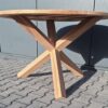Teak Tuintafel Kruispoot Ø120 cm met 4 Langkawi Tuinstoelen