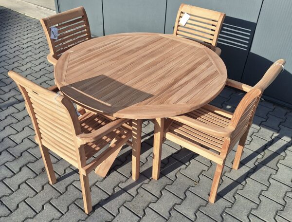 Compact Genieten: De Teak Kruispoot Ø120 cm met 4 Langkawi Stoelen